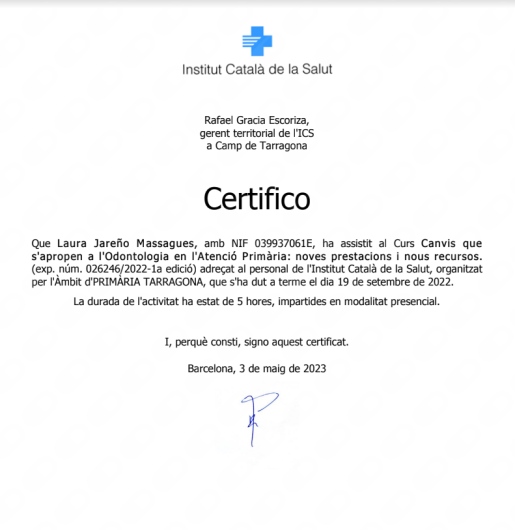 ¿Cuáles son las principales especialidades de Laura Jareño Massagués?Laura Jareño Massagués es dentista. Te mostramos algunos de los servicios que ofrece gracias a su trayectoria y amplia experiencia: Primera visita Odontología, Ortodoncia, Odontología estética, Servicio integral odontología, Primera visita Odontología Pediátrica, Carillas dentales, Higiene dental, Odontología Infantil / Odontopediatría, Carillas de composite, Carillas de porcelana.