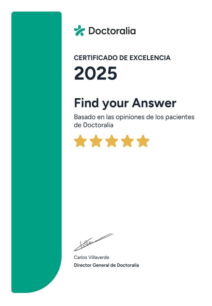 ¿Qué opinan los pacientes de Leila Victoria Álvarez Saona?Un total de 38 pacientes han querido dejar una opinión sincera y real sobre Leila Victoria Álvarez Saona, otorgándole además una valoración media de 5 estrellas (sobre un máximo de 5).