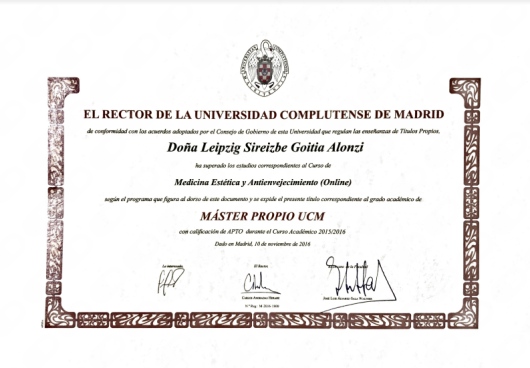 Venezuela. A su vez, ha proseguido sus estudios realizando un Máster de Medicina Estética y