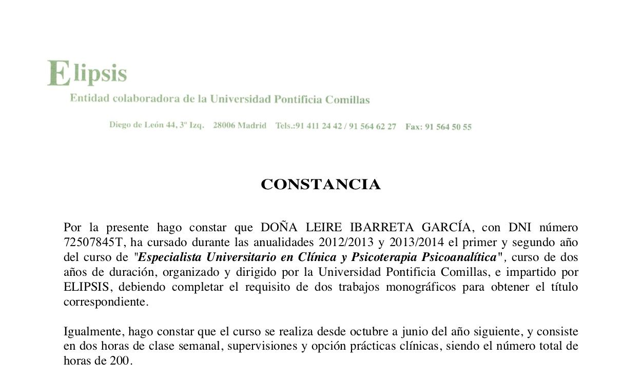 El pasado 30/5 acudí por primera vez a su consulta. Desde entonces ha pasado casi un año y no puedo estar mas satisfecho... Me gustaría destacar el empeño que pone Leire en su trabajo, es una profesional que te escucha de principio a fin en cada sesión, apuntando y recordando siempre todos los detalles, no te pierde la pista. Como me considero una persona reflexiva y analítica no tenía grandes expectativas en conseguir demasiados nuevos enfoques, pero puedo afirmar con rotundidad que gracias a ella los he conseguido, he logrado un mayor grado de conocimiento de mi persona y por lo tanto una gran madurez. Me hubiese gustado seguir trabajando con ella pero por motivos laborales me marcho a vivir fuera. Aun así, creo que ahora tengo una estructura firme para poder seguir trabajando en mi desarrollo, supongo que es algo que uno debe hacer siempre, aquí nadie hace milagros y tener una mente sana requiere trabajo y constancia.