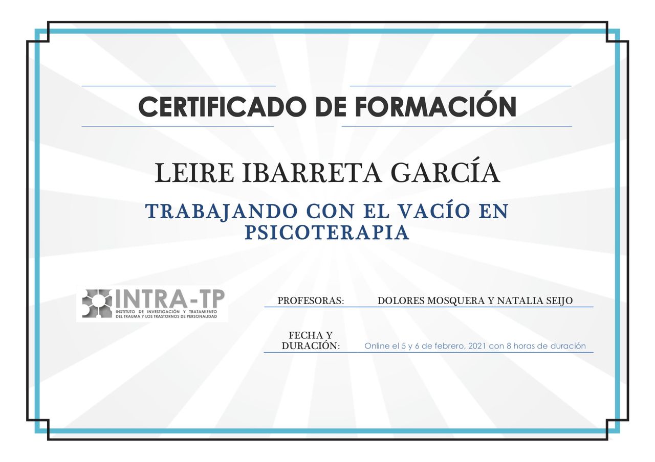 Puedo recomendar a Leire firmemente. A mi me ha servido de mucho el trabajo que he hecho con ella. Me ha acompañado en mi proceso terapeútico y me ha ayudado a darme cuanta de ciertos aspectos y áreas de mi vida sobre las que debía tomar visión, decisión y acción. Me he quitado unas cuantas vendas de los ojos y entendido más de donde venían mis problemas. He recuperado la confianza en mi misma, veo claro qué camino quiero tomar y qué pasos ir dando para lograrlo.