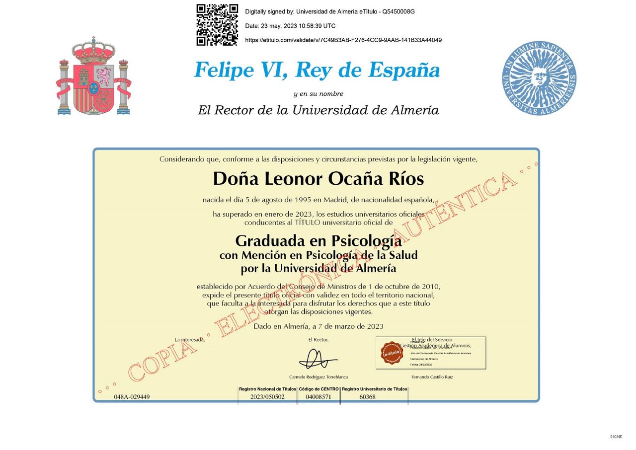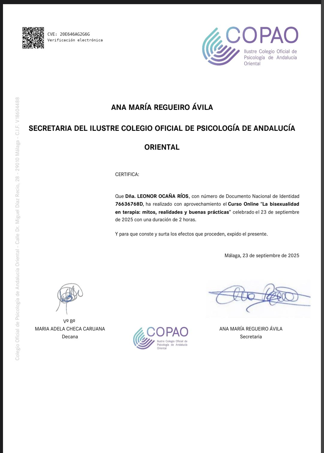 Mi nombre es Leonor y soy graduada en psicología por la Universidad de Almería. Soy una psicóloga con ganas de ayudar a las personas a encontrar su equilibrio y bienestar emocional.