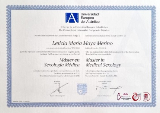 Máster en Sexología Médica por la Universidad del Atlántico.