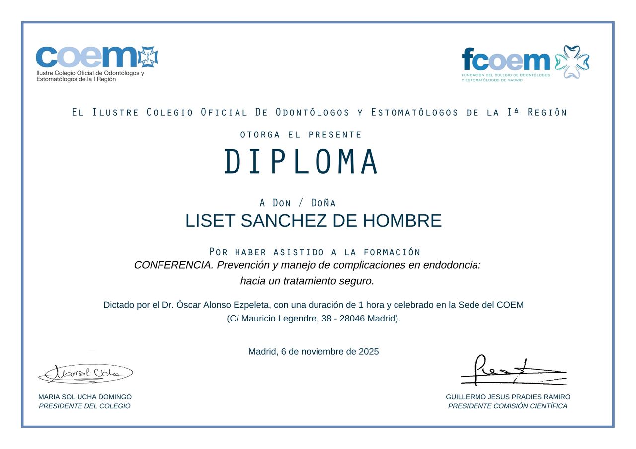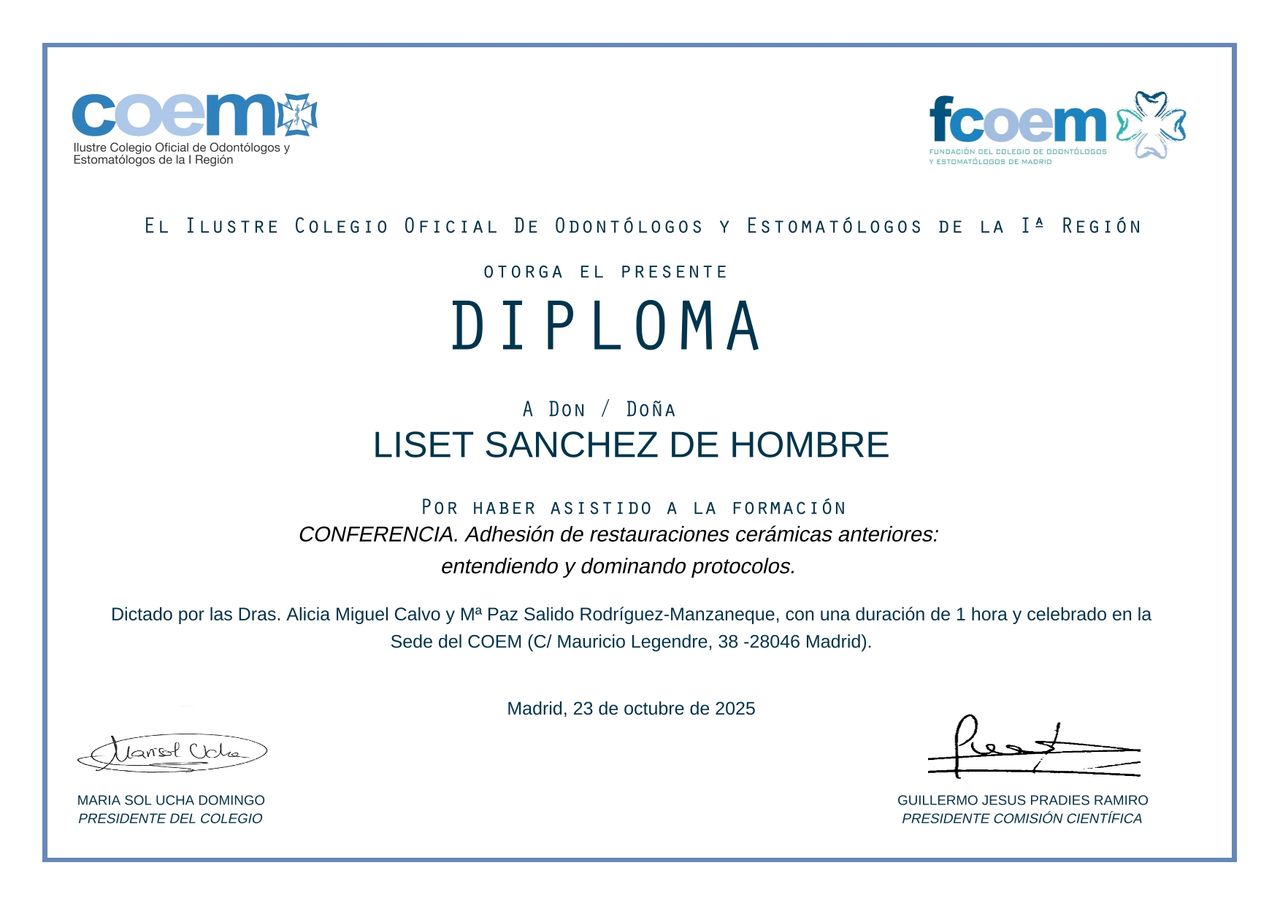 Excelente atención. La Dra. Liset ha sido muy atenciosa, paciente y profesional en todo momento. Me hizo sentir cómoda y en buenas manos. Totalmente recomendada.