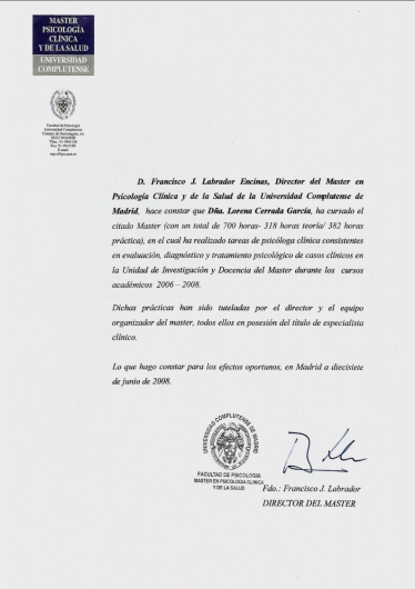Con experiencia certificada tanto en el ámbito público como privado de la Salud Mental.