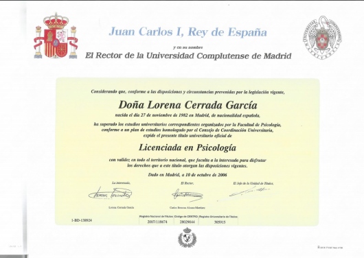 • Despacho Profesional de Psicología Clinica y de la Salud. Lorena Cerrada. • Primera visita Psicología •