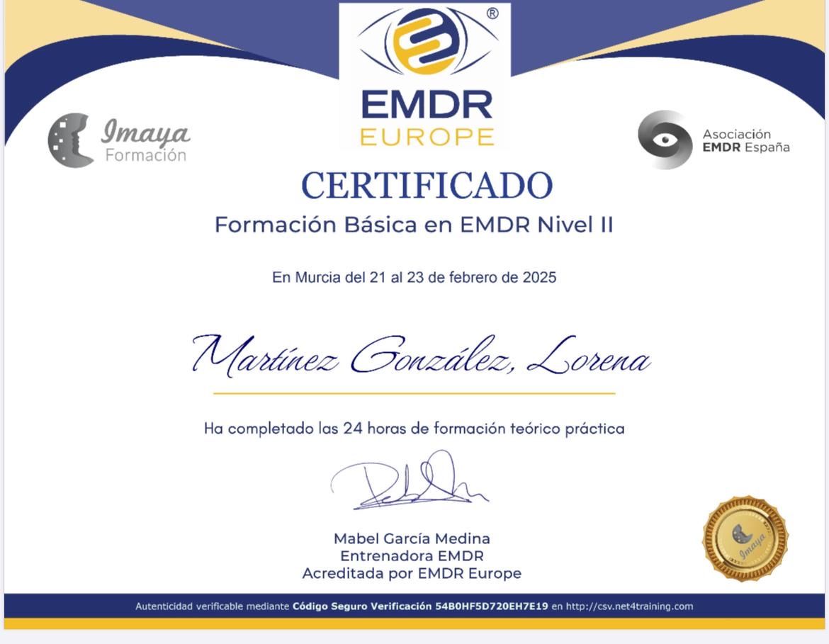 No he podido encontrar mejor profesional. Cada día agradezco más la decisión de haber empezado las sesiones con Lorena.