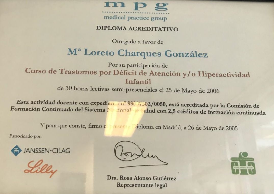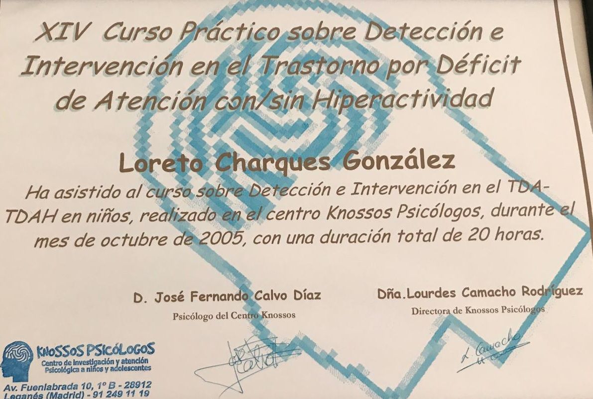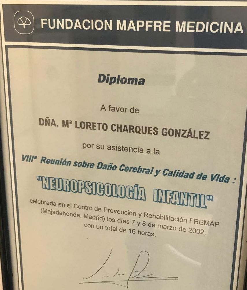 ¿Cuáles son las principales especialidades de Loreto Charques González?Loreto Charques González es psicóloga, psicóloga infantil. Te mostramos algunos de los servicios que ofrece gracias a su trayectoria y amplia experiencia: Primera visita Psicología, Valoración de la atención, Psicoterapia, Valoración Cociente Intelectual, Valoración de psicología, Psicoterapia adultos.