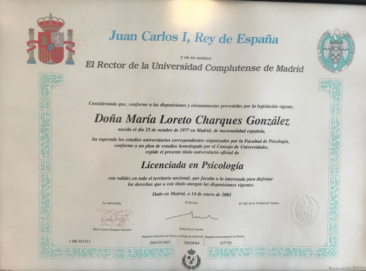 Licenciada en Psicología por la Universidad Complutense de Madrid.