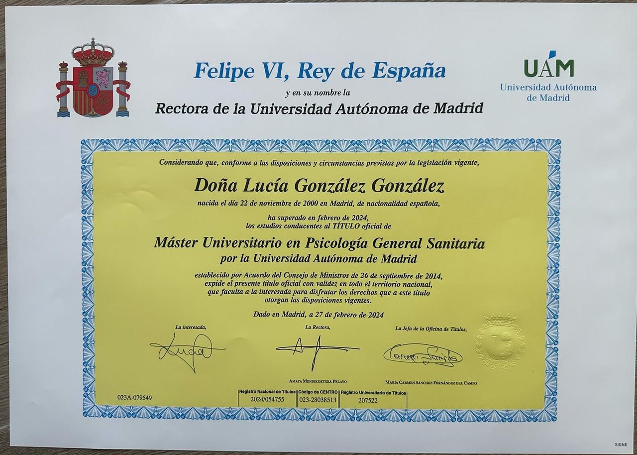 Lucía es una excelente profesional. Es muy cercana y sabe crear un espacio seguro donde resulta fácil hablar y abrirse. Tiene una manera de hacerte ver las cosas desde otra perspectiva que nunca habría imaginado, y eso me está ayudando muchísimo. Es agradable, paciente y sabe escuchar de verdad, respetando siempre mis tiempos y mi espacio. Estoy muy agradecida por su acompañamiento y la recomiendo totalmente