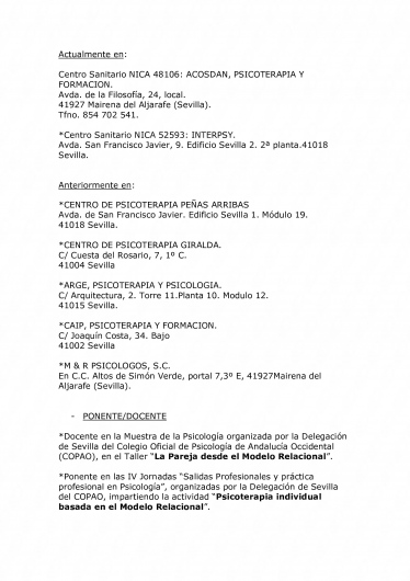 Gran profesional. Después de 4 meses de terapia estoy superando muchos problemas que no me dejaban dormir, ni vivir.