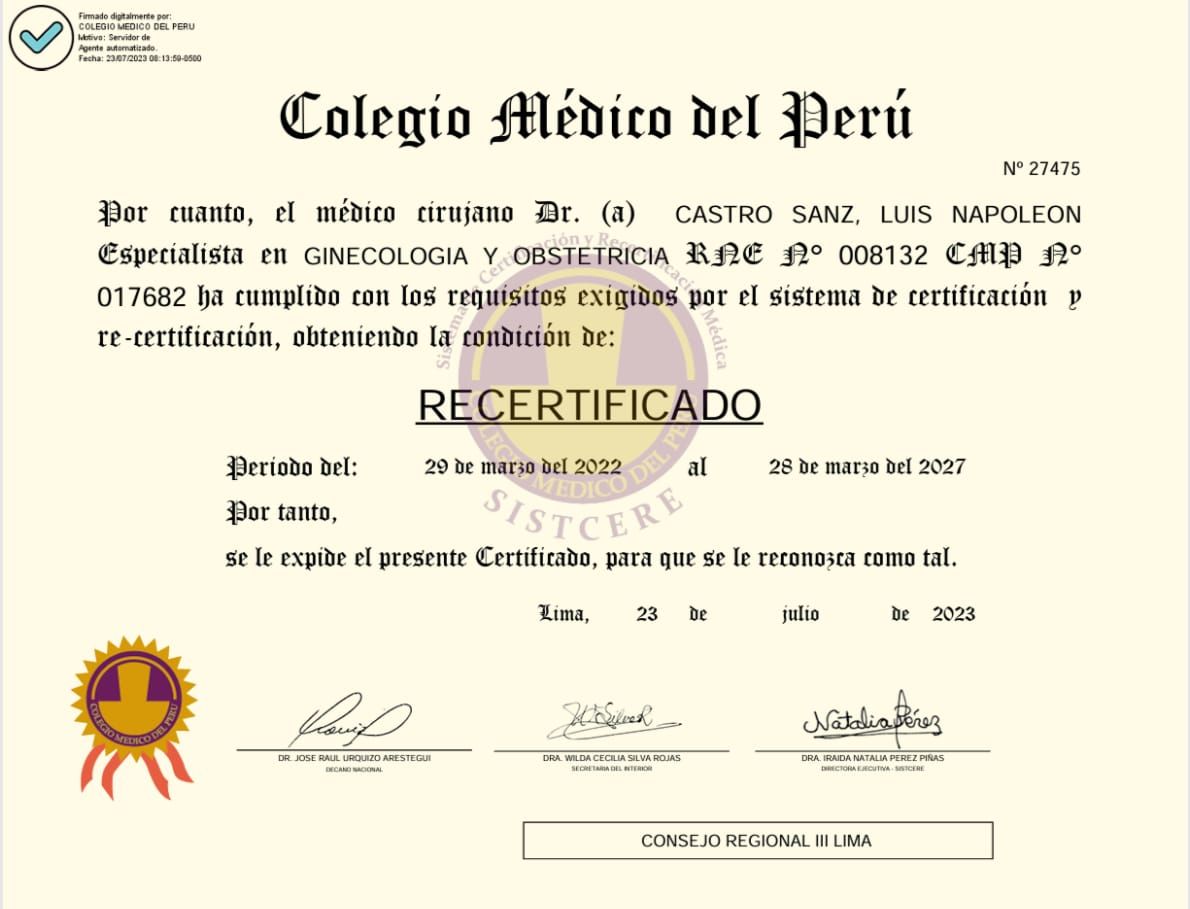 Médico Cirujano, especialista en ginecología y obstetricia y experto en salud sexual y reproductiva. Profesional capacitado en gestión de servicios de salud. Seguridad y salud en el trabajo. Amplia experiencia asistencial y gerencial en el sector público y privado. Docente y consultor en temas relacionados. Respetuoso de la ética, comprometido con la calidad, seguridad y calidez en el cuidado de la salud y promotor de la responsabilidad social, empresarial y cuidado del medio ambiente, enfocado en los 17 objetivos de desarrollo sostenible de la ONU.