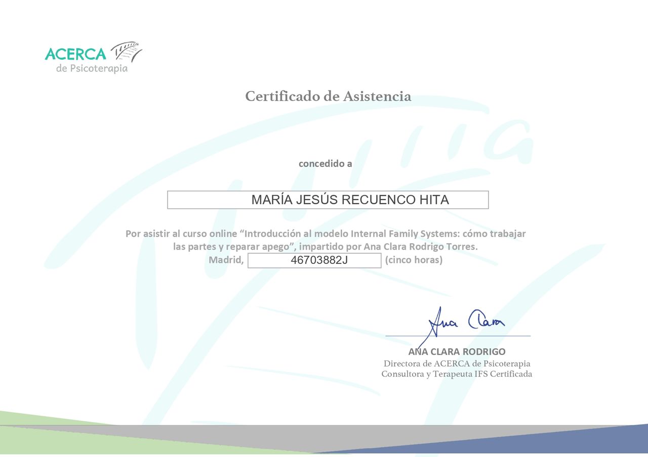 Gracias por tu cercanía, tu comprensión y por guiarme con tanta claridad en cada sesión. Ha sido muy importante contar con tu apoyo en este proceso.