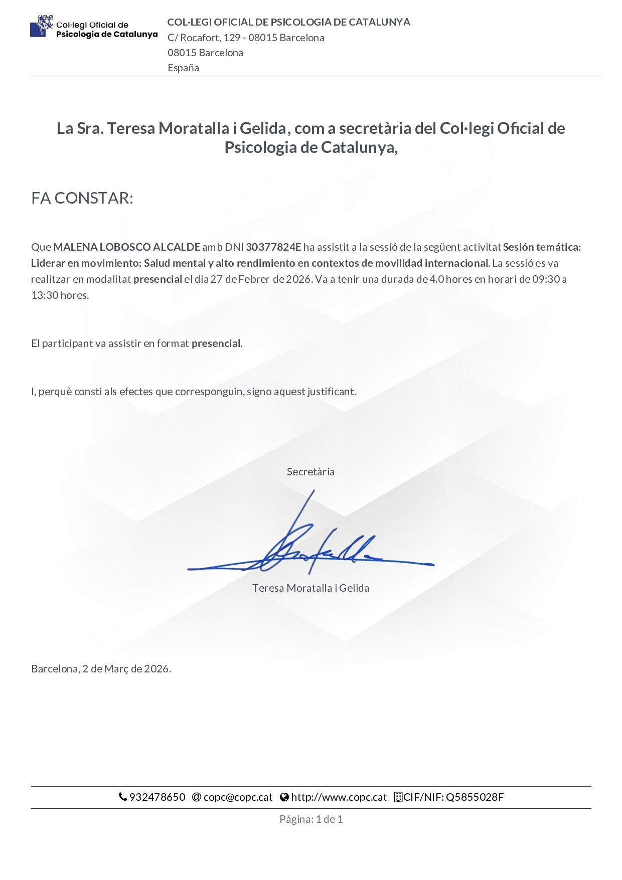 Barcelona 1 dirección