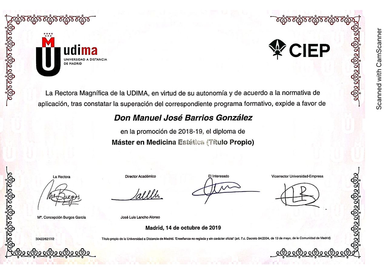 ¿Cuáles son las principales especialidades de Manuel Barrios González?Manuel Barrios González es médico estético. Te mostramos algunos de los servicios que ofrece gracias a su trayectoria y amplia experiencia: Consulta de medicina estética, Aumento de labios, Marcación mandibular, Mesoterapia facial, Peeling químico, Rinomodelación, Profhilo (Relleno Dérmico), Aplicación de neurotoxina en arrugas de expresión (entrecejo, frente y patas de gallo), Mesoterapia capilar, Relleno del surco nasogeniano.