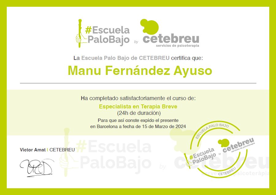 Manuel desde el principio ha estado muy atento a mí, la verdad que desde el principio he sentido conexión y cercanía con el como si lo conociera de mucho más tiempo, es un gran psicologo.