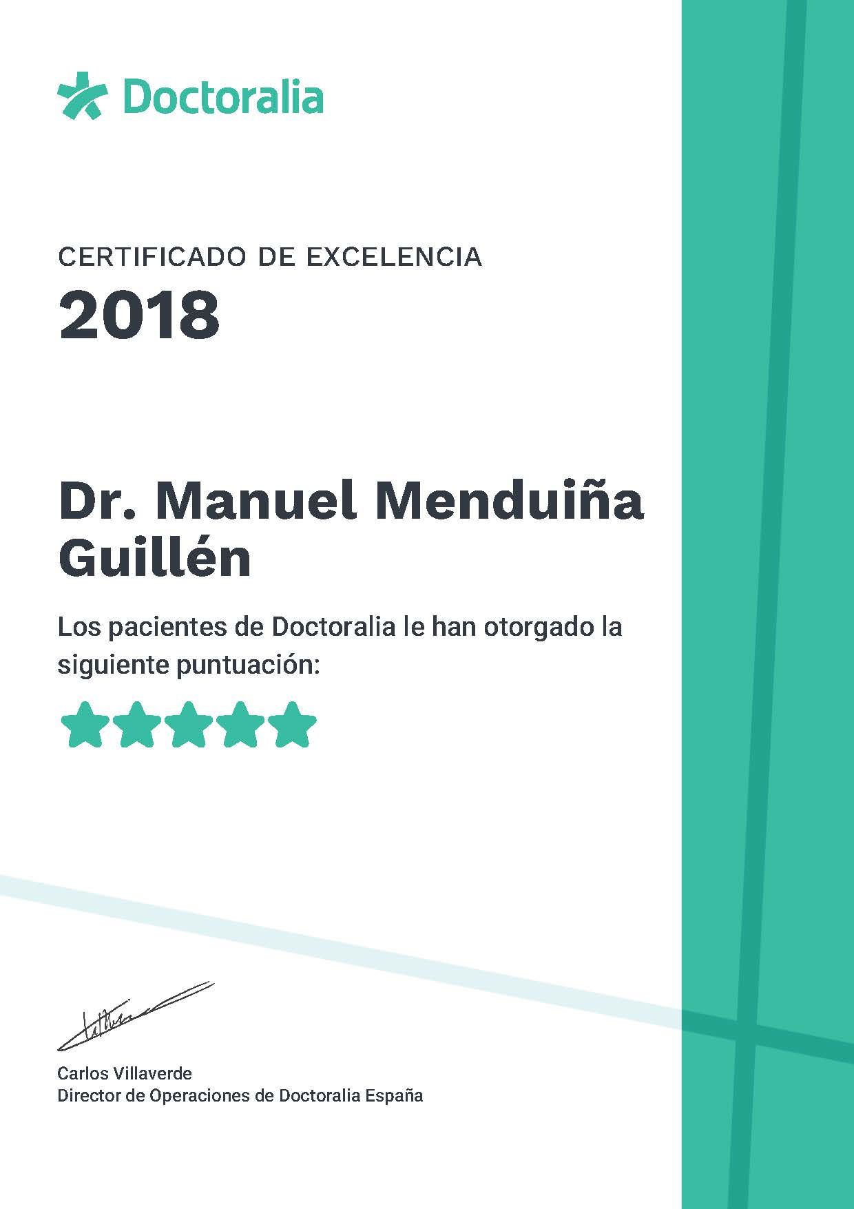 ¿Puedo hacer la visita con Manuel Menduiña Guillén de forma online, sin tener que desplazarme hasta su consulta?Sí, Manuel Menduiña Guillén ofrece consulta de forma remota. Solo tienes que seleccionar "consulta online" cuando vayas a reservar cita desde el calendario, y así podrás ver las fechas y horas disponibles.