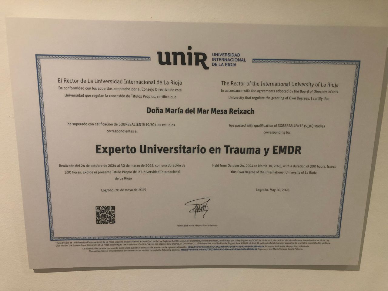 ¿Cuáles son las principales especialidades de Mar Mesa Reixach?Mar Mesa Reixach es psicóloga. Te mostramos algunos de los servicios que ofrece gracias a su trayectoria y amplia experiencia: Primera visita Psicología, Psicoterapia individual, Psicoterapia en adolescentes, Consulta de Psicología Sanitaria, Reestructuración cognitiva, Modificación del estilo de vida, Terapia de duelo, Terapia cognitivo-conductual, Estimulación cognitiva, Psicoterapia.