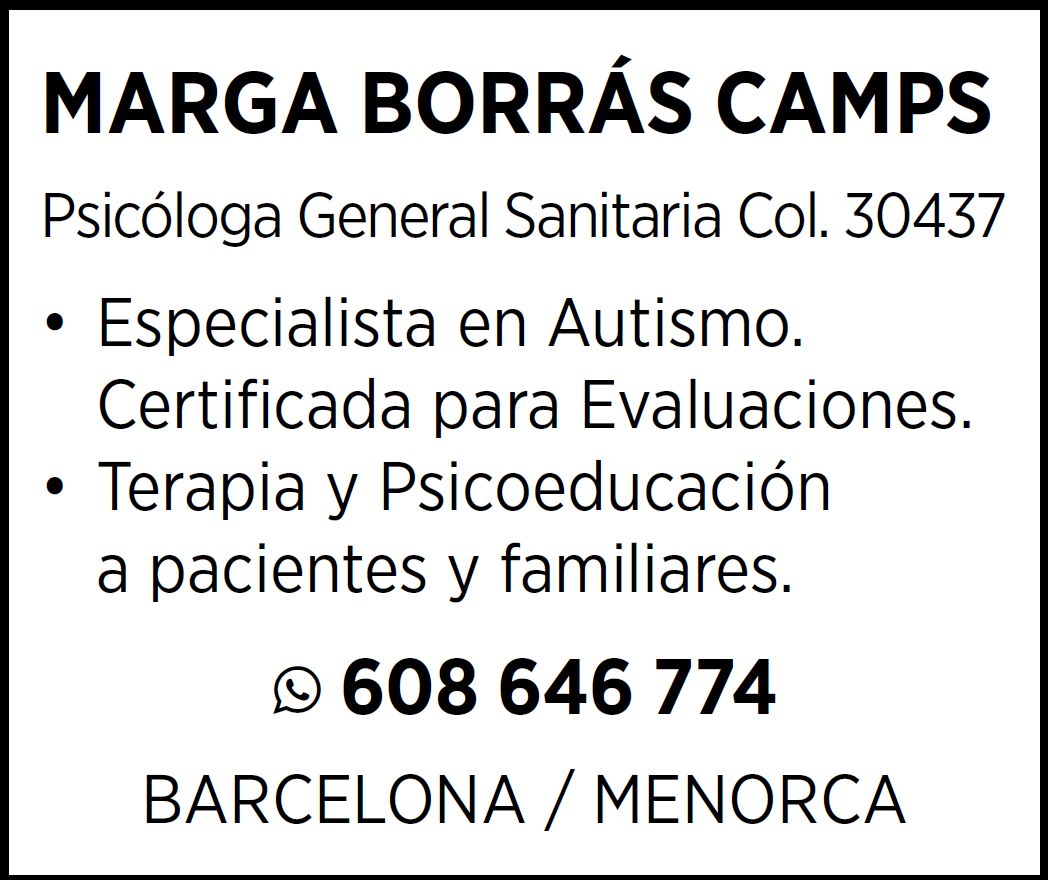 Hola! Soy Marga Borrás Camps, Psicóloga General Sanitaria.
