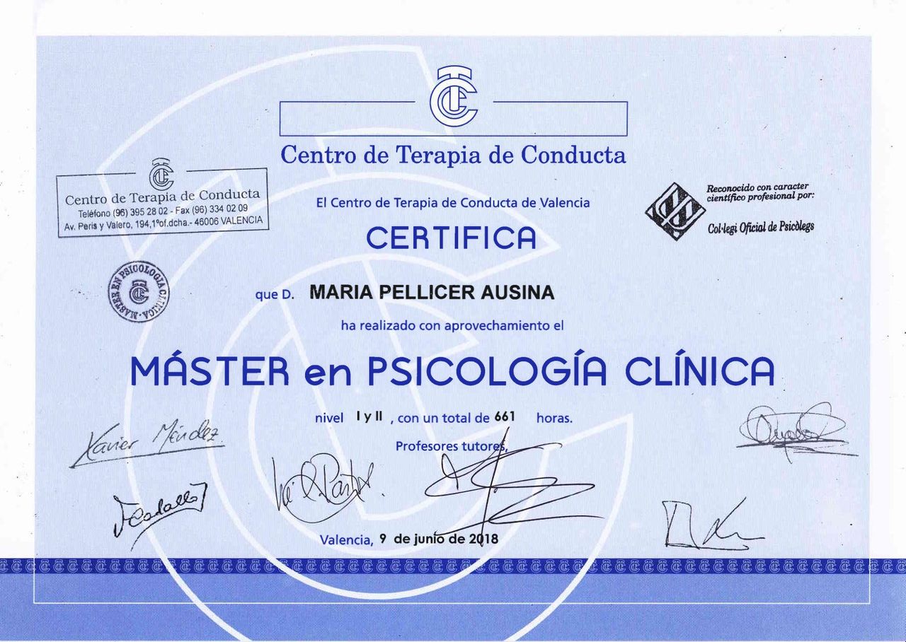 Me ayudo muchísimo durante una mala epoca. Lo que mas me gusta de maria es su implicación en cada sesion. No esta pendiente de la hora como otr@s con l@s que he estado. Ojala la hubiera conocido antes