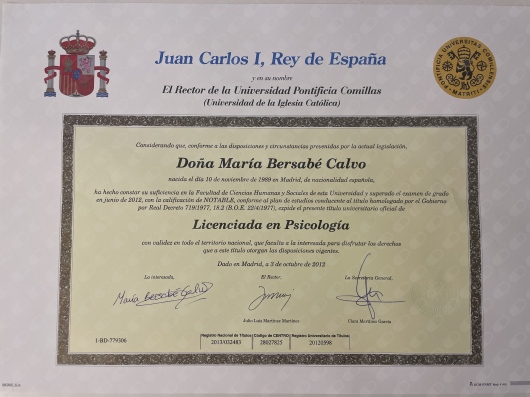 Por último, mencionar que estoy habilitada para el ejercicio de la psicología sanitaria por la Consejeria de Sanidad de la Comunidad de Madrid.