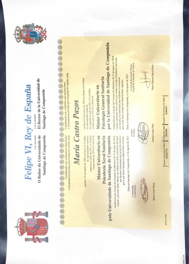 Tras varios años de estudio y formación puedo decir que soy Psicóloga General Sanitaria, con número de colegiación por el Colegio Oficial de Psicólogos de Santiago (G-6459).