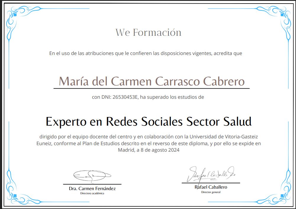 ¿Qué idiomas habla María del Carmen Carrasco Cabrero?Puedes comunicarte con María del Carmen Carrasco Cabrero en Español, Inglés.