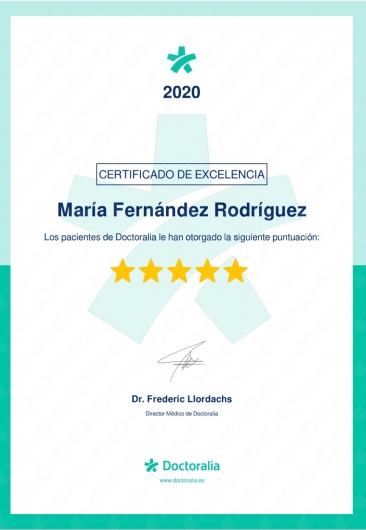 ¿Cómo puedo reservar una cita con María Fernández Rodríguez?El calendario que muestra María Fernández Rodríguez en Doctoralia está actualizado en tiempo real, por lo que solo tienes que elegir qué día y hora te va mejor de entre las disponibles. La reserva es gratuita, y además recibes un recordatorio antes de la visita.