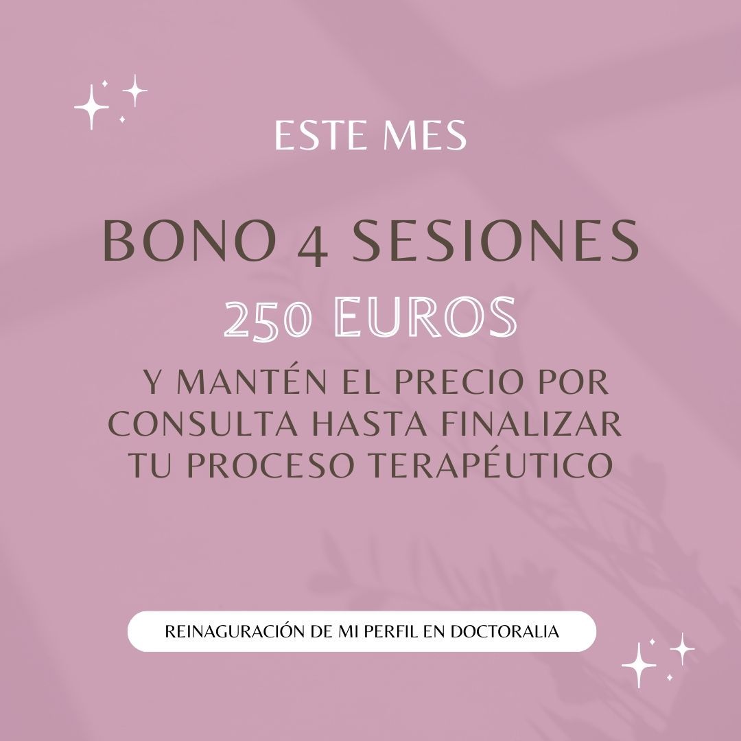 Una íntima amiga me recomendó a María Jesús, ella había estado en terapia también. Aunque el momento "on line" no me convencía me decidi a probar. Desde el primer momento me transmitió confianza y me ayudó a abrirme. Supo hacer las sesiones amenas de modo que no me costó expresarme y me dio muchas herramientas que me reportaron, y me reportan, fuerza y confianza para mejorar y estabilizarme.