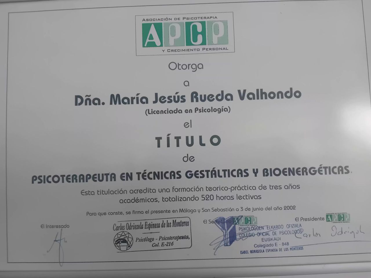 Núm. Colegiado: GZ01475