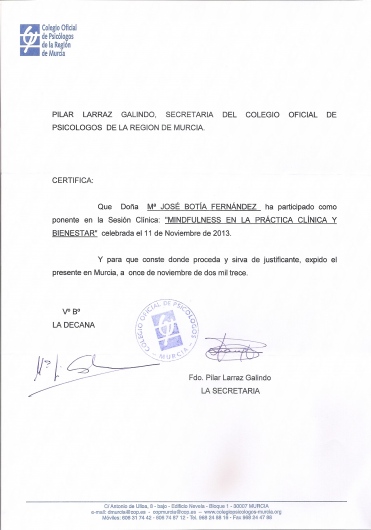 ¿Cuáles son las principales especialidades de María José Botía?María José Botía es psicóloga. Te mostramos algunos de los servicios que ofrece gracias a su trayectoria y amplia experiencia: Visita Psicología, Primera visita Psicología, Diagnóstico y tratamiento para trastornos de ansiedad, Desarrollo y crecimiento personal, Diagnóstico y tratamiento de los trastornos alimentarios, Talleres de desarrollo personal, Psicoterapia individual, Diagnóstico y tratamiento de los trastornos afectivos, Terapias contextuales/ de tercera generación, Terapia de pareja.