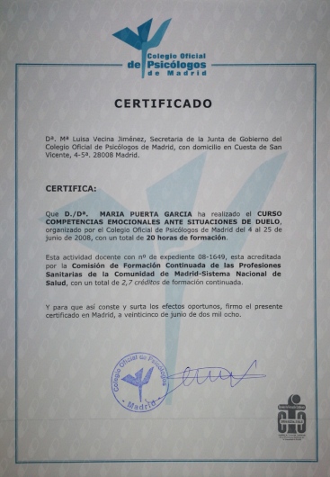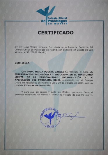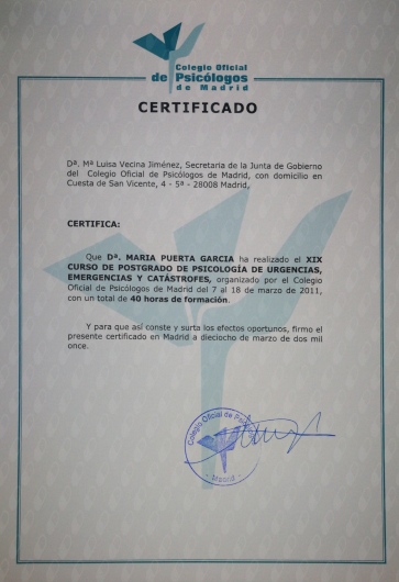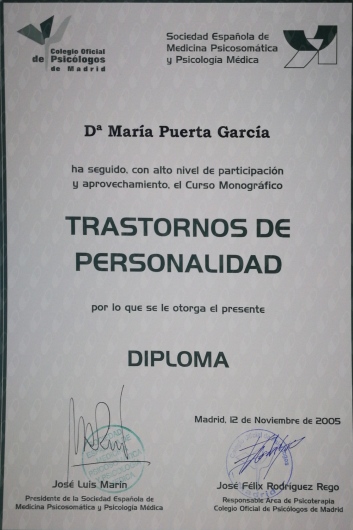 Licenciada en Psicología por la Universidad Autónoma de Madrid, 2002.
