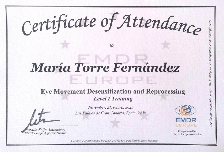 María es una profesional maravillosa. Durante las sesiones me siento muy cómoda, me transmite mucha calma y tiene una capacidad de escucha y comprensión que me ayudan mucho. Sus explicaciones me ayudan a entender mejor lo que me pasa y a avanzar. La recomiendo mucho!