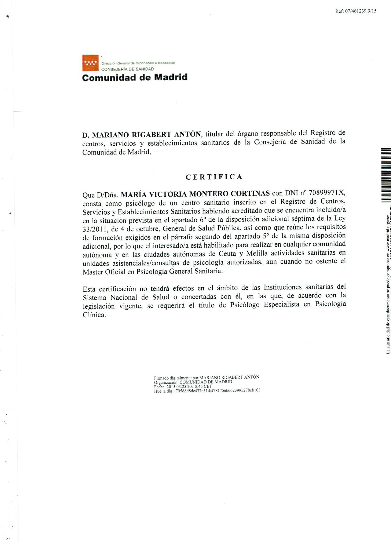 Núm. Colegiado: CL05678