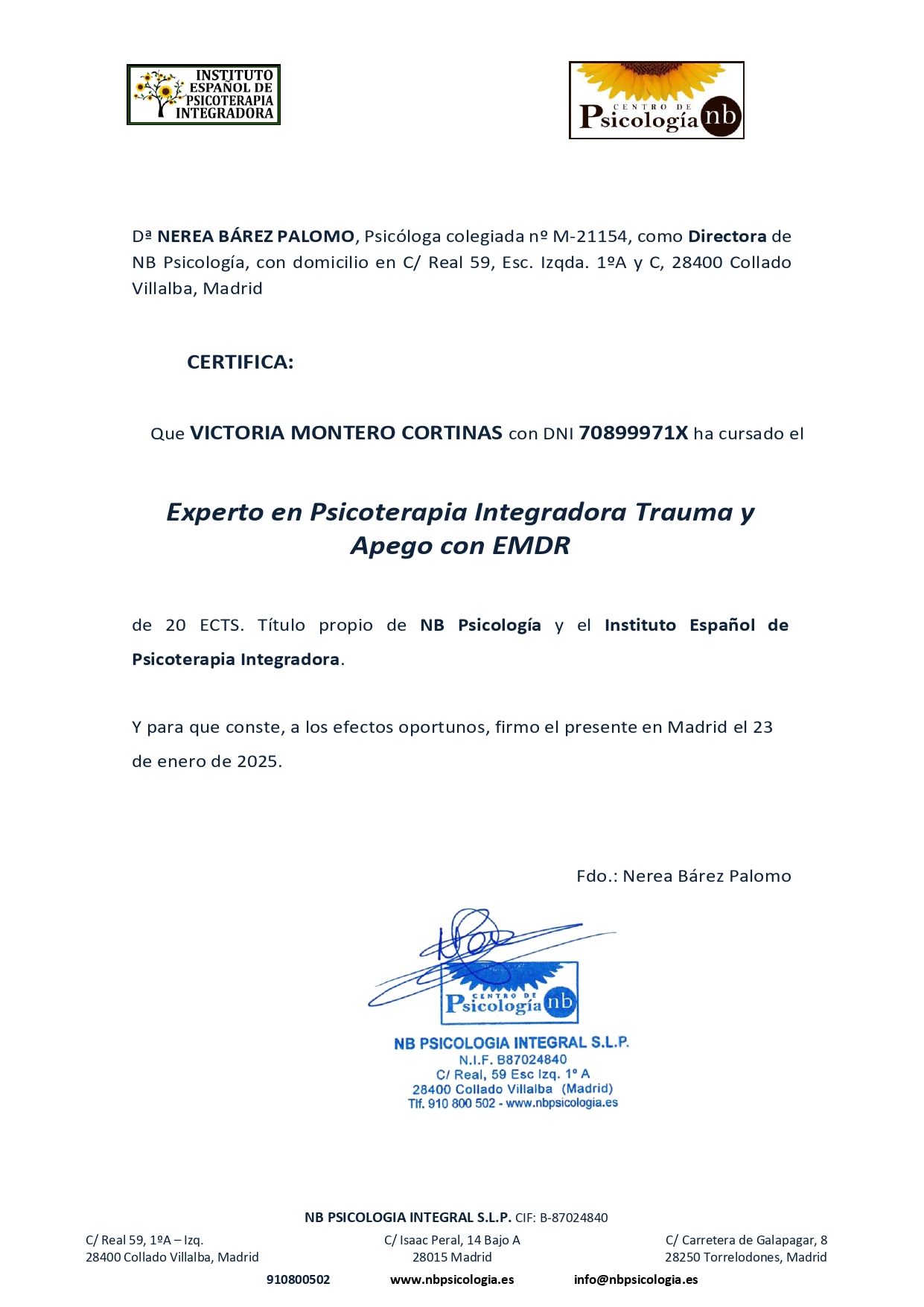 Victoria es una profesional de pies a cabeza siempre dispuesta a ofrecer todos sus conocimientos de la mejor forma posible