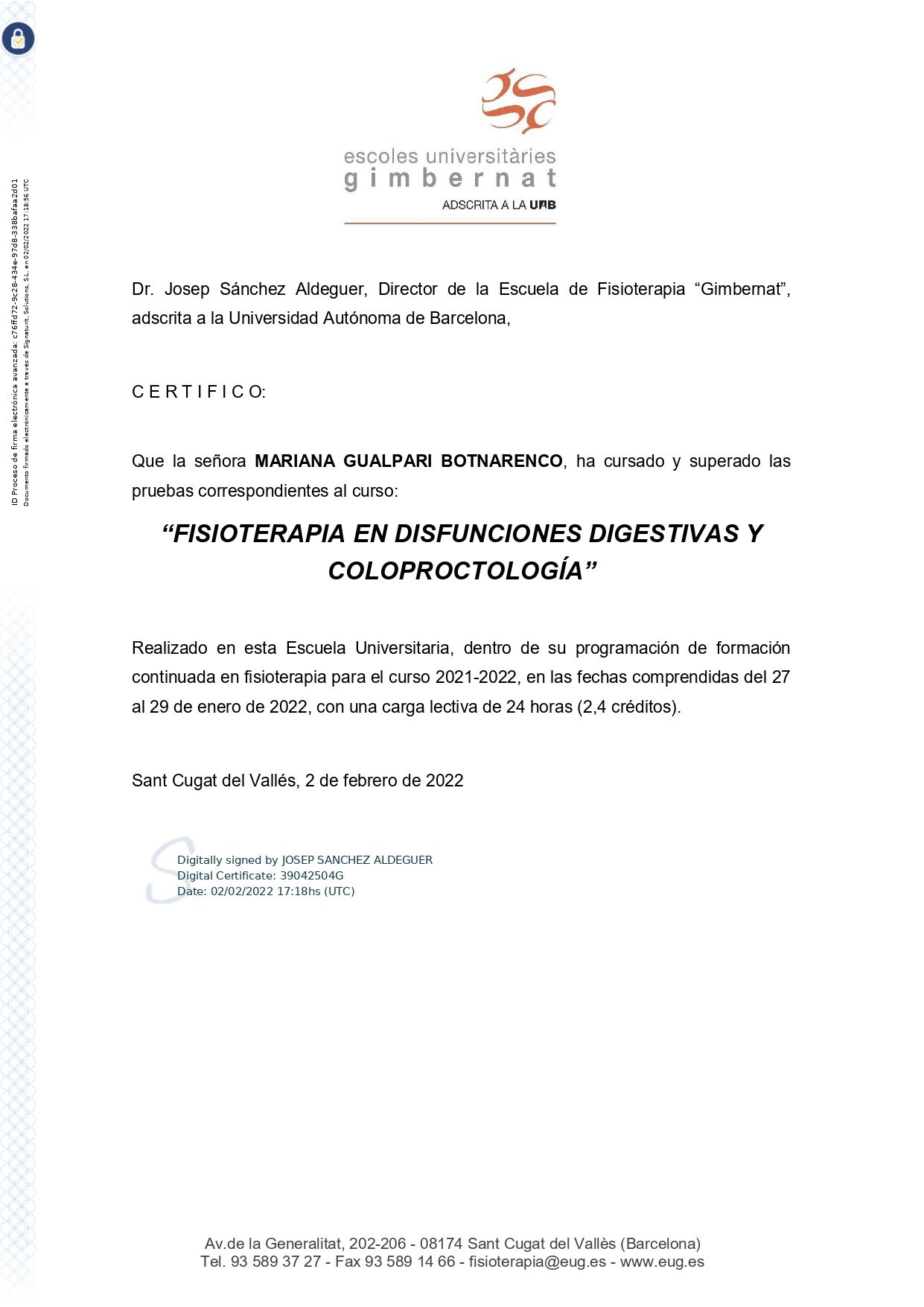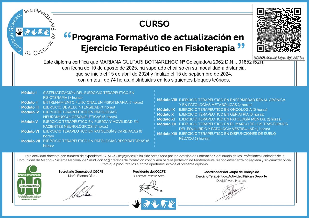 ¿Cuáles son las principales especialidades de Mariana Gulpari?Mariana Gulpari es fisioterapeuta. Te mostramos algunos de los servicios que ofrece gracias a su trayectoria y amplia experiencia: Visita Fisioterapia, Fisioterapia del suelo pélvico.