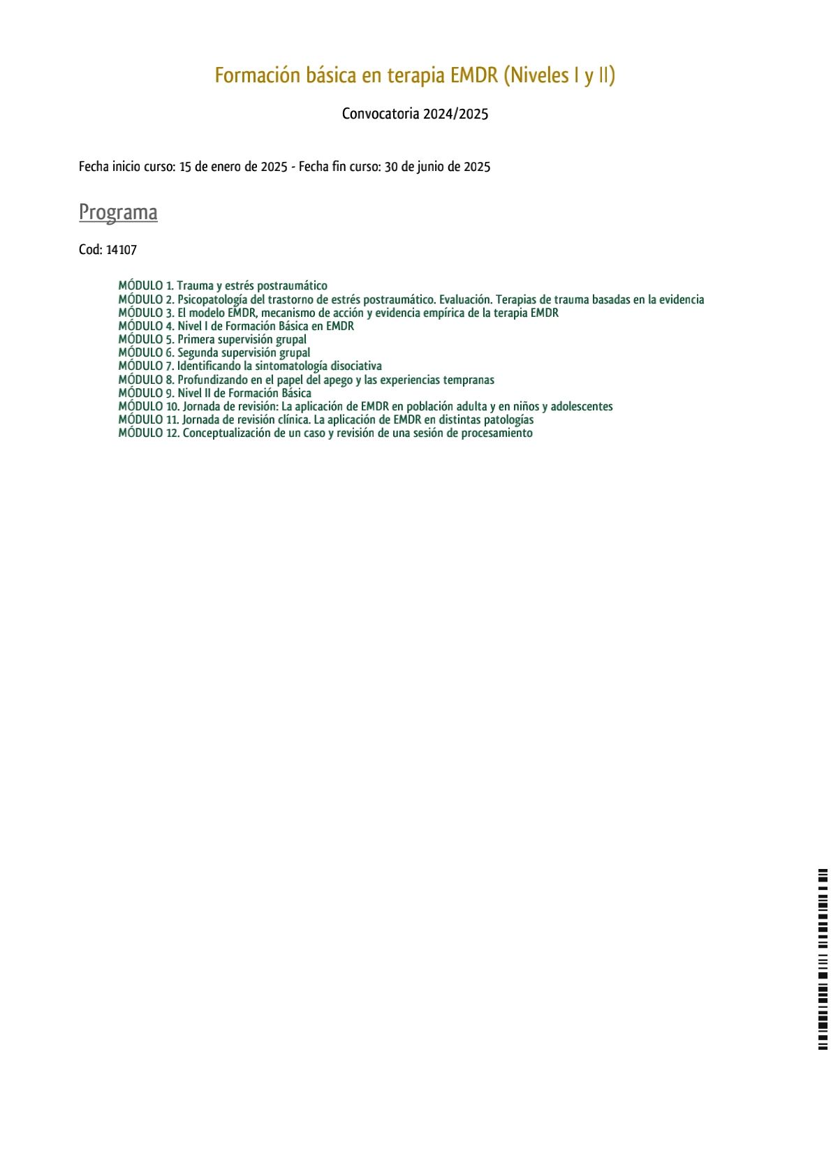 Especialista en: