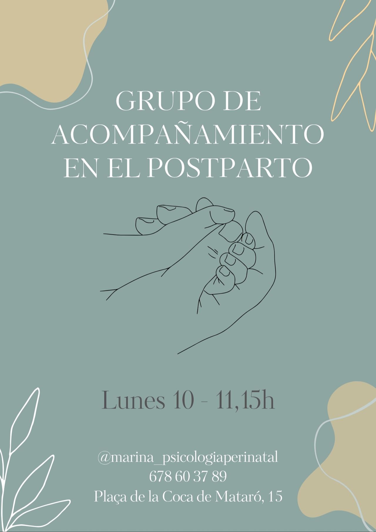 A partir de Abril, todos los lunes, grupo de apoyo al postparto.