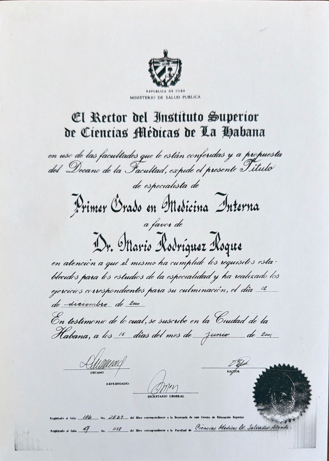 Dr. Mario Rodriguez Roque