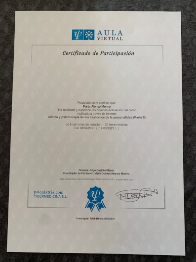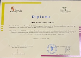 Obtuve la licenciatura en Psicología por la Universidad Pontificia de Salamanca, Máster de Gestión y Desarrollo de Recursos Humanos por la UBU y Máster de Psicología General Sanitaria por la UNIR. Tengo amplia formación en Neuropsicología y en Intervención emocional y de conducta en niños y adolescentes. Actualmente sigo ampliando mi formación en Sistémica y EMDR .