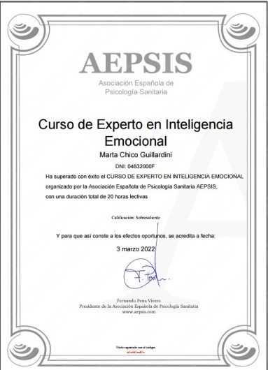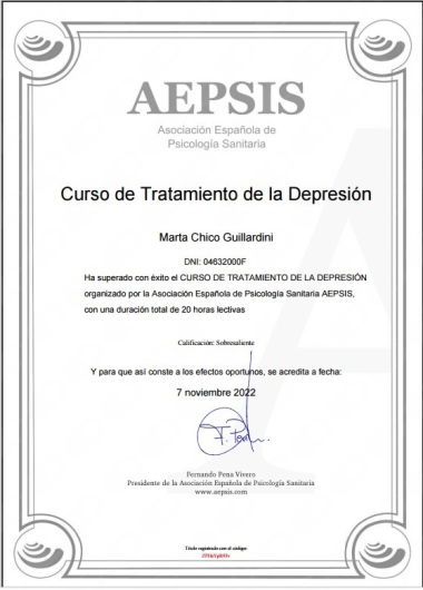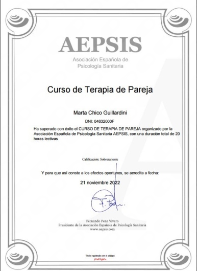 Conocer a Marta ha sido un gran descubrimiento. Una profesional intachable y una persona que empatiza genial con las situaciones que le planteas. Asistir a su terapia es lo mas acertado que he hecho últimamente. Sin ninguna duda la recomendaría a cualquier persona que la necesite.