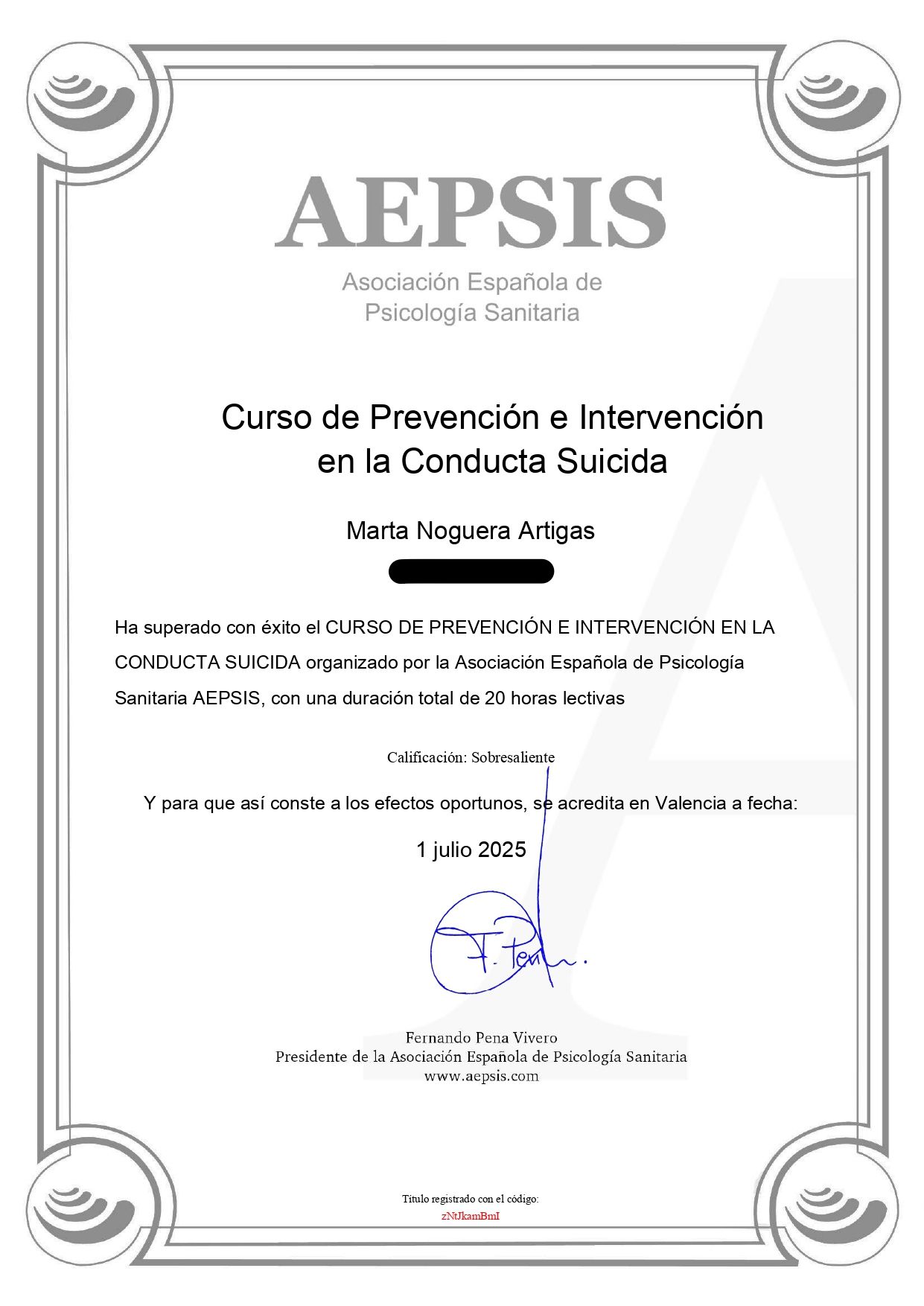 La recomiendo al 100%, sin lugar a dudas.• Consulta virtual (a distancia) - Marta Noguera Artigas • Consulta psicológica online •