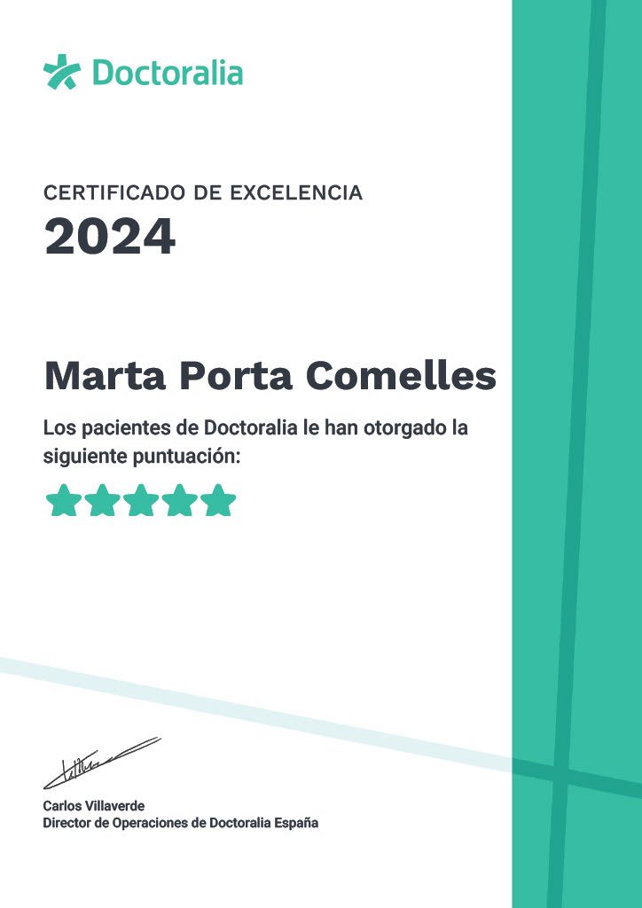 El calendario que muestra Marta Porta Comelles en Doctoralia está actualizado en tiempo real, por lo que solo tienes que elegir qué día y hora te va mejor de entre las disponibles. La reserva es gratuita, y además recibes un recordatorio antes de la visita.
