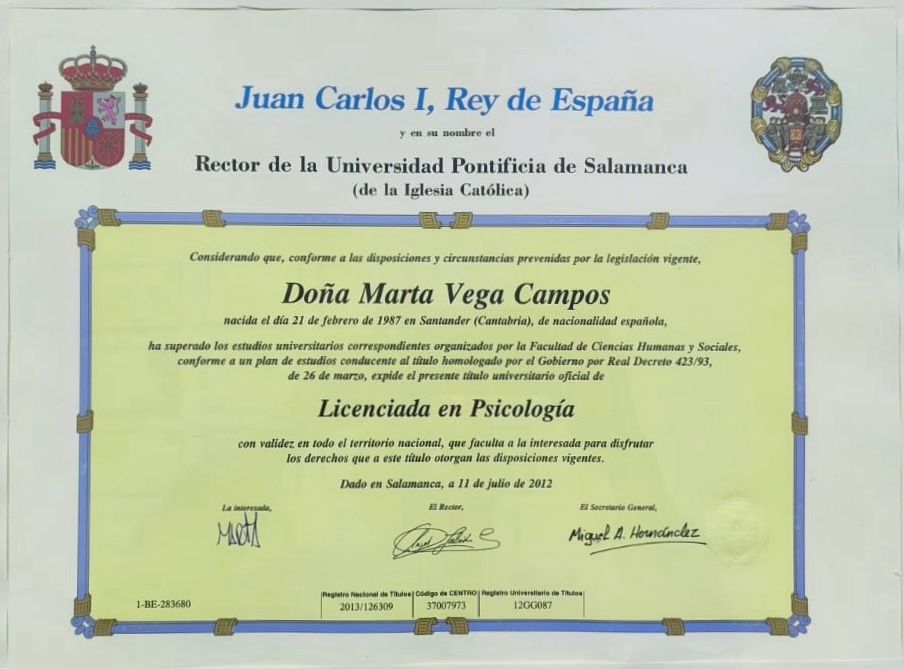 Marta es una gran profesional, que tiene muchos conocimientos, sabe trasmitirlos a las personas para que sean útiles, además, es muy cercana y profesional, sabe escuchar y se preocupa por ti. Sin duda, para mi ir a consulta con ella ha marcado una gran diferencia y me ha ayudado en todos los aspectos de mi vida.