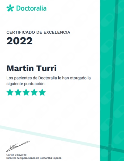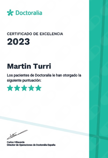 ¿Cómo puedo reservar una cita con Martin Turri?El calendario que muestra Martin Turri en Doctoralia está actualizado en tiempo real, por lo que solo tienes que elegir qué día y hora te va mejor de entre las disponibles. La reserva es gratuita, y además recibes un recordatorio antes de la visita.