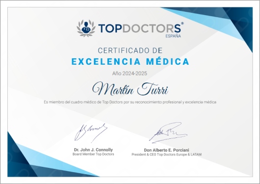 ¿Puedo hacer la visita con Martin Turri de forma online, sin tener que desplazarme hasta su consulta?Sí, Martin Turri ofrece consulta de forma remota. Solo tienes que seleccionar "consulta online" cuando vayas a reservar cita desde el calendario, y así podrás ver las fechas y horas disponibles.