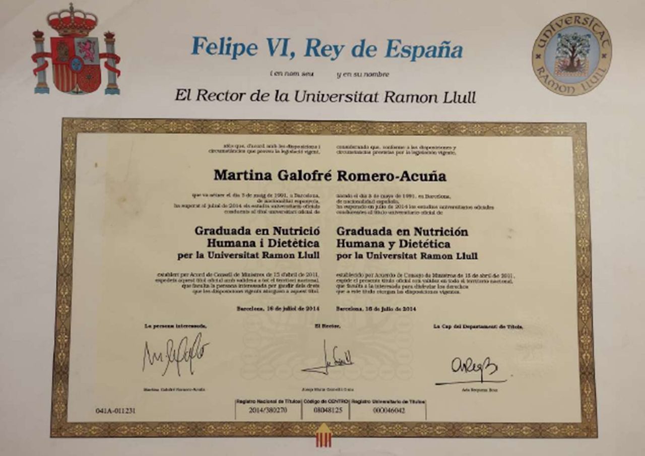 ¿Cuáles son las principales especialidades de Martina Galofré?Martina Galofré es dietista nutricionista. Te mostramos algunos de los servicios que ofrece gracias a su trayectoria y amplia experiencia: Nutrición Online, Consulta online, Visitas sucesivas Nutrición y Dietética, Nutriterapia, Tratamiento nutricional en la hipercolesterolemia, Tratamiento nutricional para trastornos gastrointestinales, Coaching nutricional, Educación nutricional, Tratamiento nutricional de patología digestiva, Control nutricional en escolares y adolescentes.
