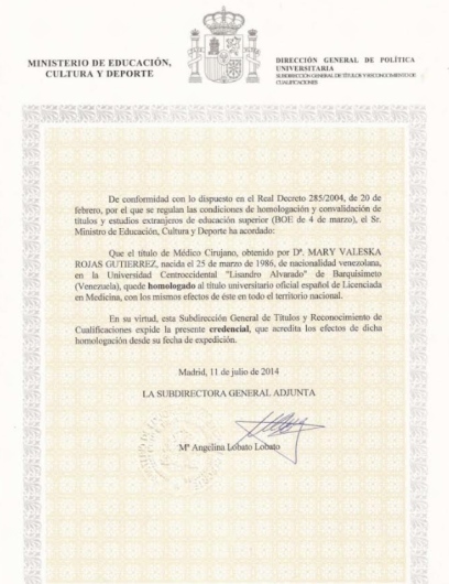 La Dra. Mary Valeska Rojas Gutiérrez es Licenciada en Medicina, egresada de la Universidad Centroccidental «Lisandro Alvarado» de Venezuela, título homologado en España.