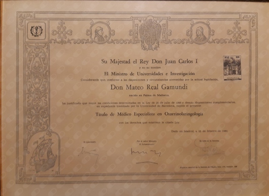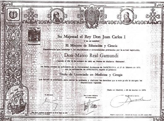 El otorrino en Mallorca Mateo Real es licenciado en Medicina y Cirugía por la Universidad Autónoma de Barcelona y especialista en ORL por el Hospital Universitario de Son Dureta de Palma de Mallorca.