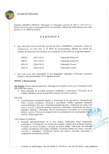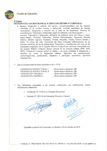 Especialista en osteopatía estructural, visceral y craneal, en reflexología podal y en osteopatía neopediátrica.